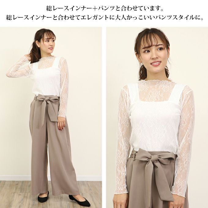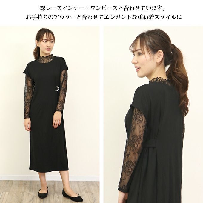 【メール便対応】日本製 総レースインナー 首元 おしゃれ ハイネック 長袖 レディース 女性 トップス インナーシャツ かわいい 可愛い 花柄 レース エレガント きれいめ 大人 ファッション 上品 大きいサイズ ストレッチ 白 黒 送料無料