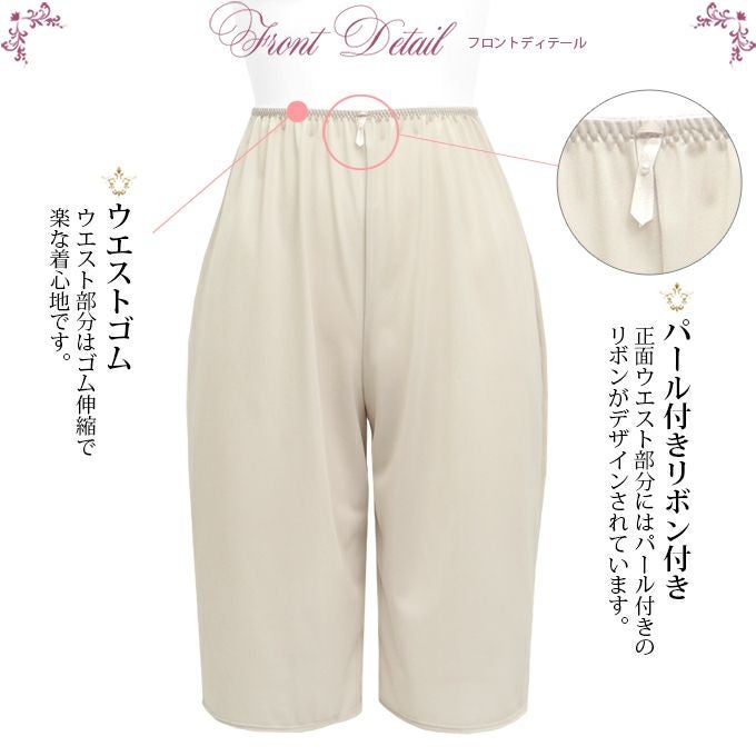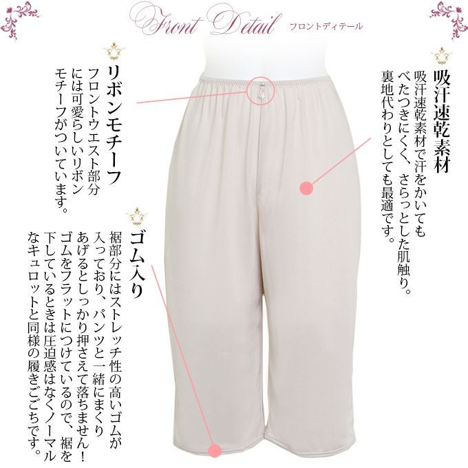 送料無料 SUBROSA 日本製 国産 made in japan ペチコート キュロット スカート ハーフ シンプル 透けない 透け防止 速乾 m l ll 3l ベージュ ブラック 黒 肌着 リボン