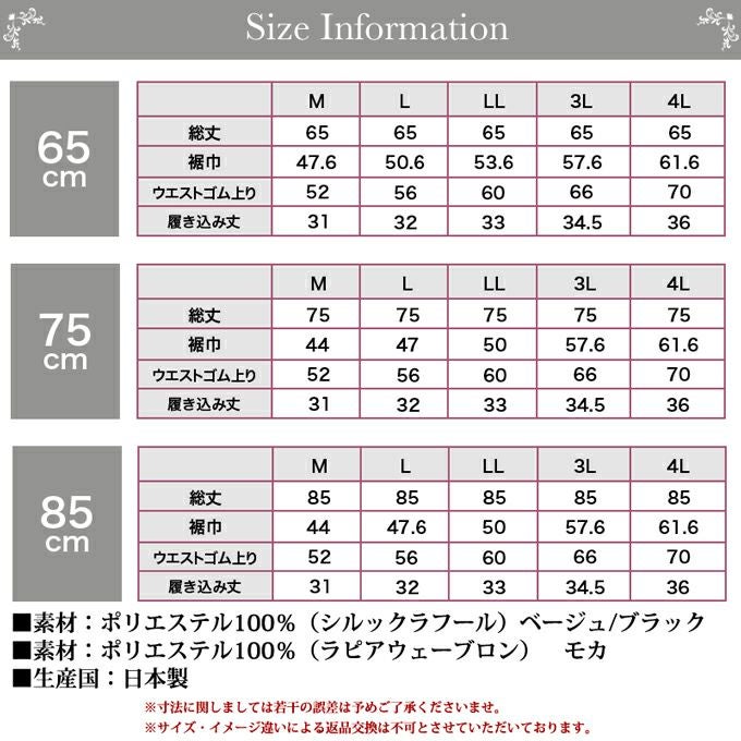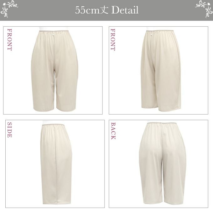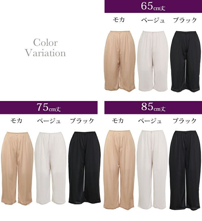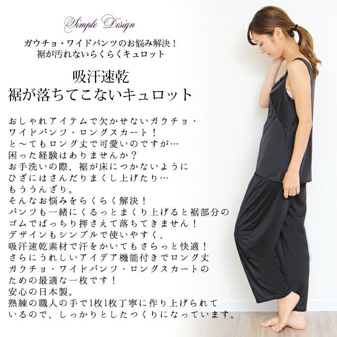 【メール便対応】日本製 ペチコート ペチパンツ パンツのお悩み解決 裾が汚れない キュロット パンツ 4699 下着 レディース 浴衣 肌着 トイレ インナー ロング シンプル 透け防止 黒 大きいサイズ 透けない 下着透け対策 65cm 75cm 85cm丈 M L LL 3L 4L 静電気防止 股ずれ 防止