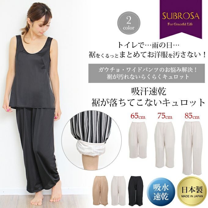 送料無料 SUBROSA 日本製 国産 made in japan ペチコートパンツ キュロット パンツ パラッツォパンツ カーブパンツ ガウチョ ワイドパンツ 透けない ブラック 黒